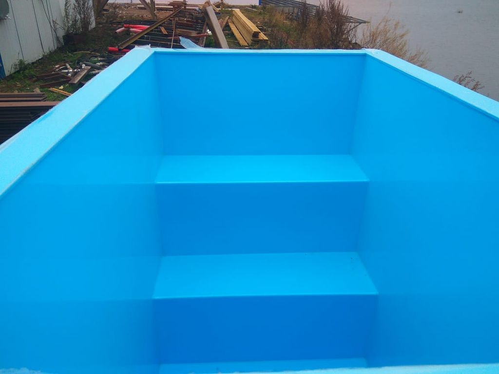 Такая купель наиболее комфортна при спуске и подъеме из воды. Это по сути купель с римской лестницей. На ступенях удобно сидеть выбирая комфортную глубину. Такая купель весить меньше ста килограм, что позволяет занести в любое помещение. Для того чтобы купель самостоятельно стояла без дополнительный опор необходимо заказать дополнительное усиление.