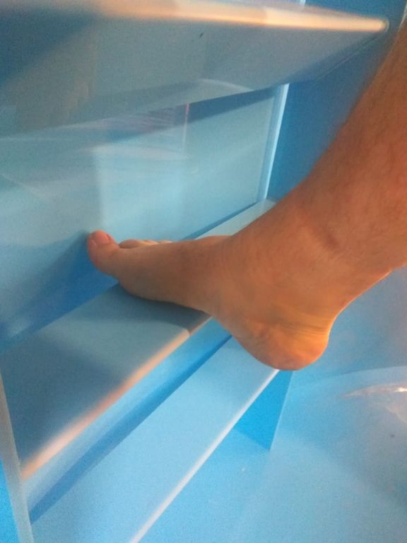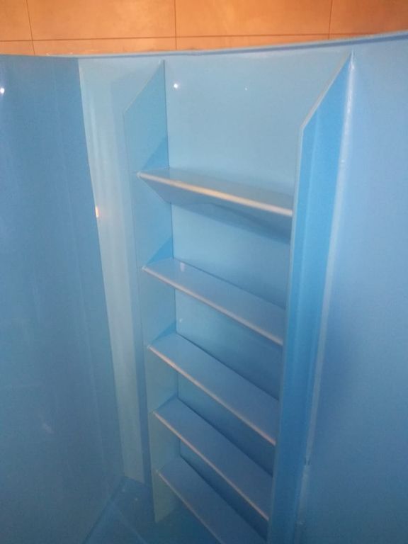 Лестница из полипропилена, приваривается к стенке купели. Прочность позволяет безопасно пользоваться людям с большим весом. Адаптируется под любую купель.